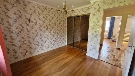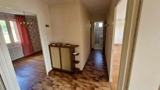 Les sols (salon, salle à manger, chambres) sont des planchers massifs en châtaigner. Le reste (cuisine, couloir, salles d'eau) est carrelé