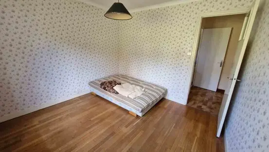 Les sols sont en parquet massif pour les 2 chambre et les 2 dressings, en carrelage pour la salle d'eau et le couloir